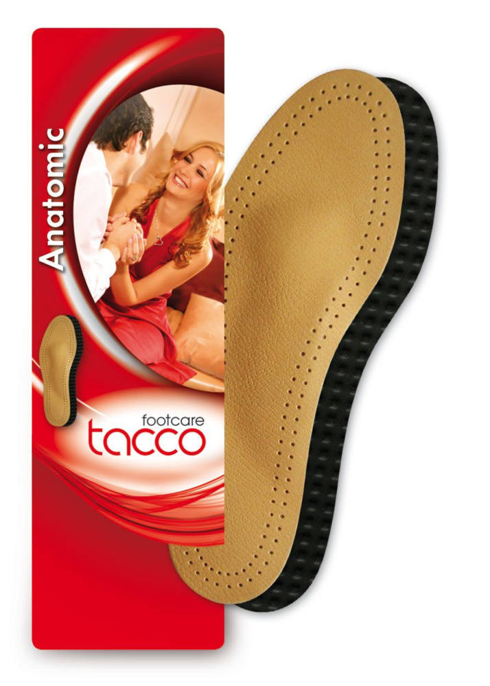 A Tacco Anatomic teljes hosszúságú talpbetét természetesen cserzett juhbőr felsőrésszel és légáteresztő, RelaxFlex rugalmas kényelmi funkcióval készült. A rugalmas lábágy segít a láb fáradtságának megelőzésében, tehermentesíti az izmokat, szalagokat, ízületeket.