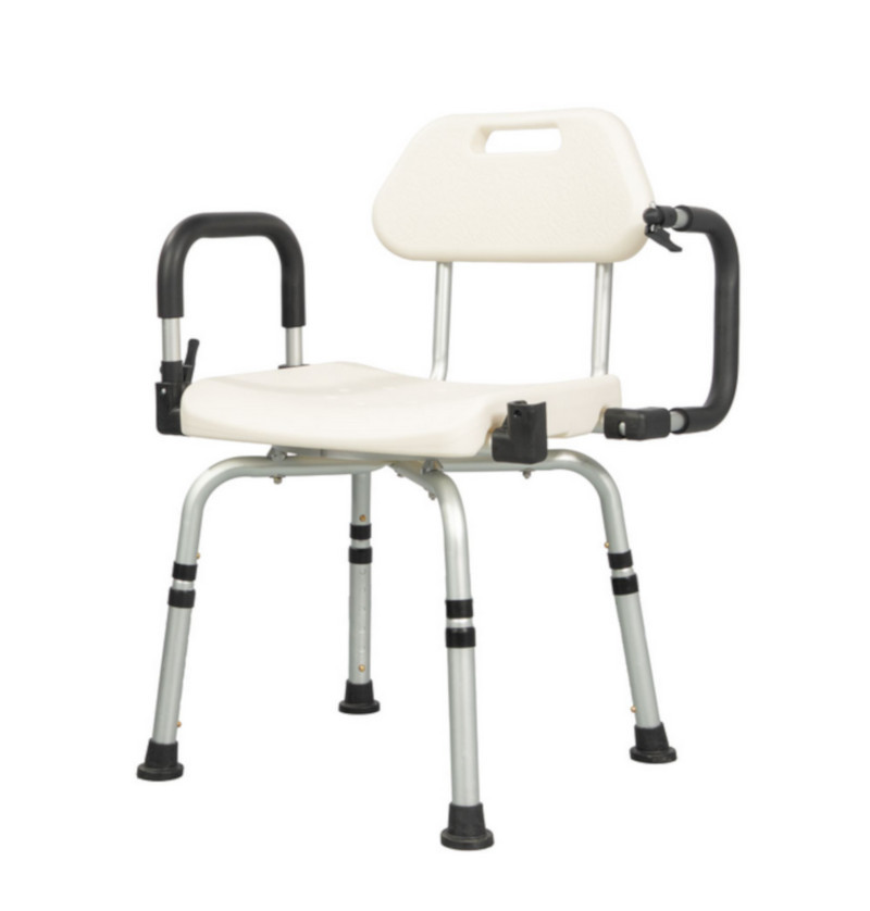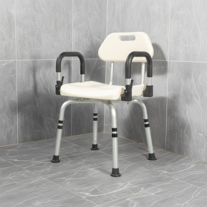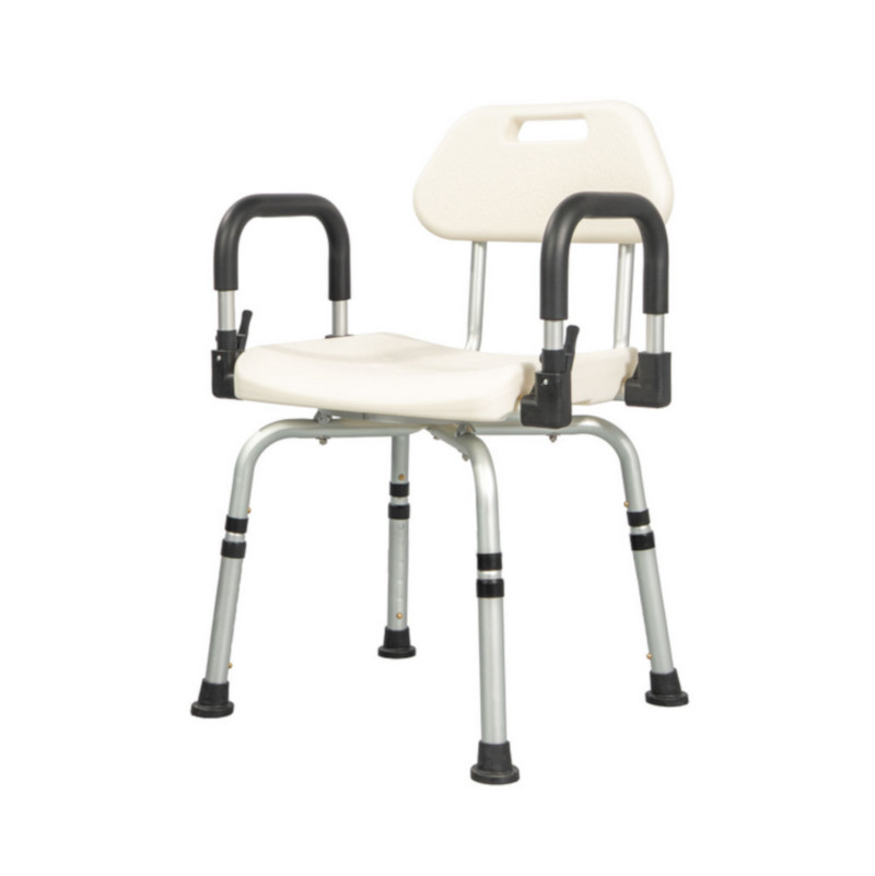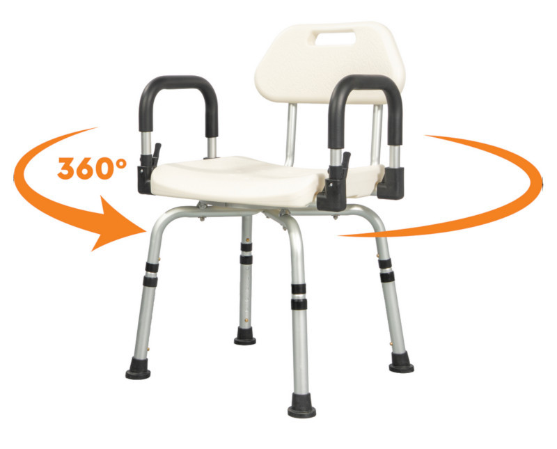 A csúszásgátló lábak biztosítják a szék stabil rögzülését a padlóhoz, így a zuhanyzás során jelentősen csökkenthető a balesetek kockázata. Az állítható magasság lehetővé teszi, hogy mindenki a saját igényeinek megfelelően használja. A háttámla és az emelhető karfák további biztonságot és könnyebb leülést-felállást tesznek lehetővé. Az ülés 360°-ban forgatható, ami megkönnyíti a mozdulatokat szűkebb térben is. A könnyű alumínium váz miatt a szék egyszerűen mozgatható és áthelyezhető.