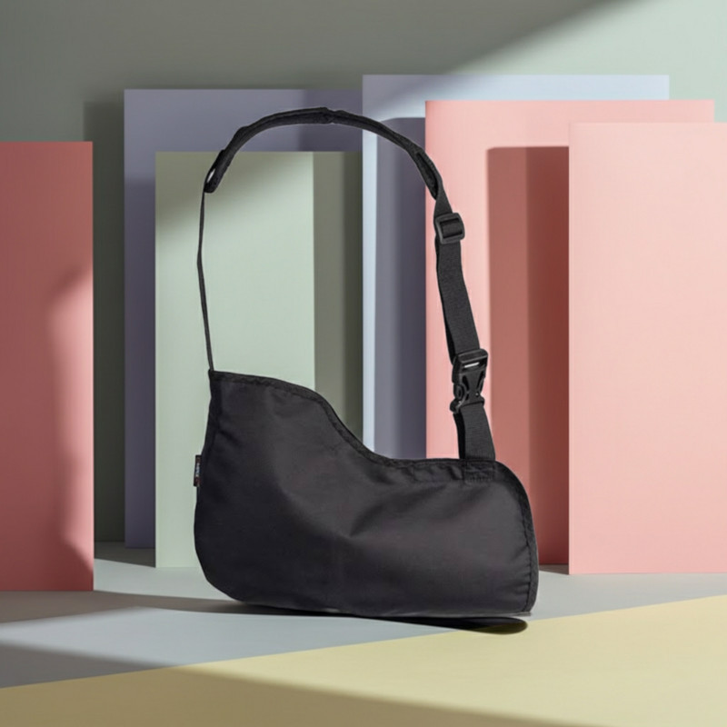 A vállpánt hossza állítható, így a kar magassága pontosan beállítható. A széles pánt a kéz súlyát egyenletesen osztja el a háton, csökkentve a terhelést. Az anyag kopásálló, hosszú távú használatra is alkalmas.
