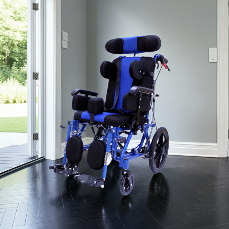 A fejtámla, az oldalsó panelek, a szegycsonttámaszok és a lábtartó puha anyaggal béleltek, ami hosszabb használat során is csökkenti a testet érő terhelést. A biztonsági keresztöv a használat közbeni rögzítést szolgálja. Az összecsukható kivitel lehetővé teszi az autóban történő szállítást, ami megkönnyíti a mindennapi mozgatást.