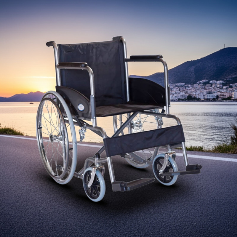 A fékrendszer a kerekeken elhelyezett kézifékkel és rögzítőfékkel biztosítja a stabil megállást, azonban a toló személy részére nem került külön fék kialakításra.