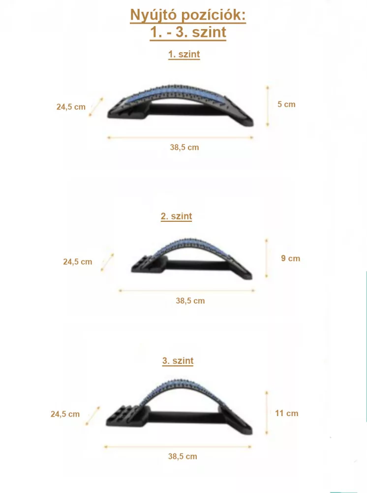 szint – 11 cm-es magasság: Maximális nyújtási pozíció (haladó felhasználóknak vagy jógázóknak) A térdét tarthatja behajlítva, vagy teljesen ki is nyújthatja a karjaival együtt. Érezze, ahogy a hát-, váll-, mell- és hasizmai megnyúlnak, és koncentráljon az ellazításra a gyakorlat során.