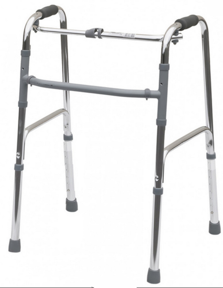 Az összecsukható járókeretet fix, nem összecsukható állapotba lehet rögzíteni a képen látható kis rögzítőelemek segítségével. Ezek a rögzítőelemek a járókeret tartozékai.