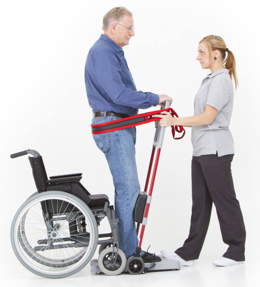térdét az eszköznek szorítva felhúzta magát állásba: el lehet fordítani és le tud ülni egy másik helyre. (pl.ágyról kerekes székbe stb)
