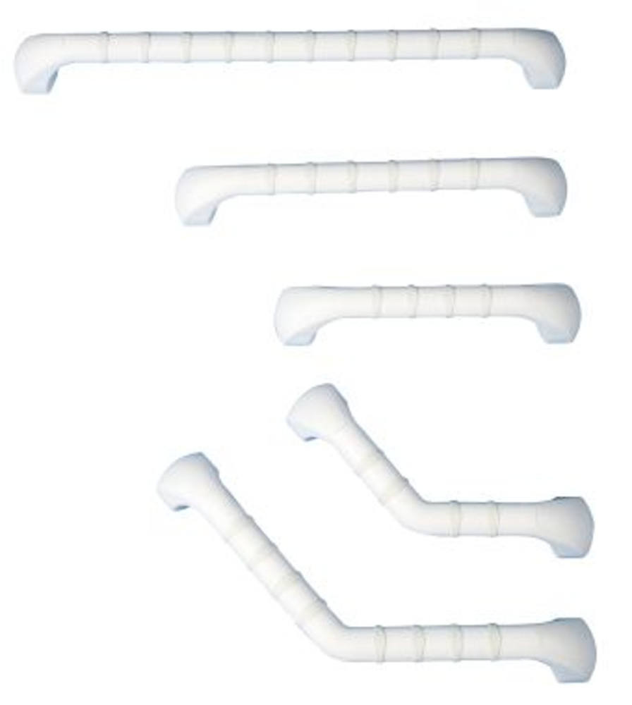 Az egyenes kapaszkodó felülete csúszásgátló gyűrűkkel van ellátva, hogy nedvesen se csússzon le róla a kéz, lekerekített formája jól kézre áll. Mivel műanyagból készült, nincs szükség felületkezelésre és nem rozsdásodik.