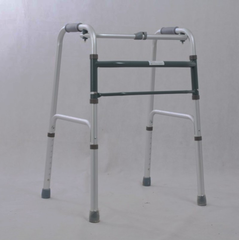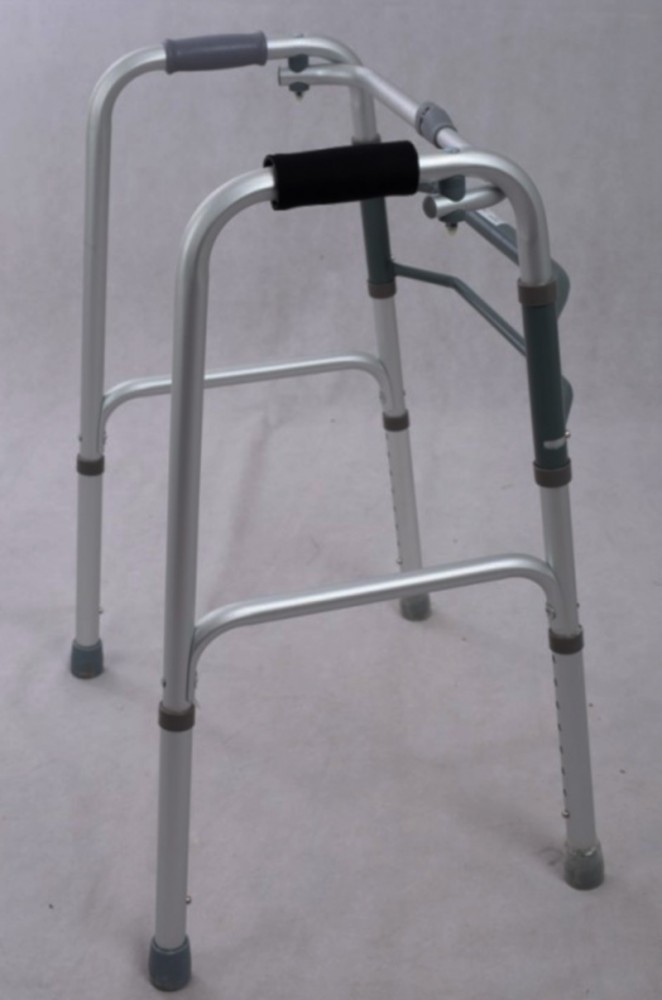 Használaton kívül, ill. szállításkor „U” alakú cső közepén található rugós csap benyomásával a két oldalkeretet befelé hajtva járókeret összecsukható.