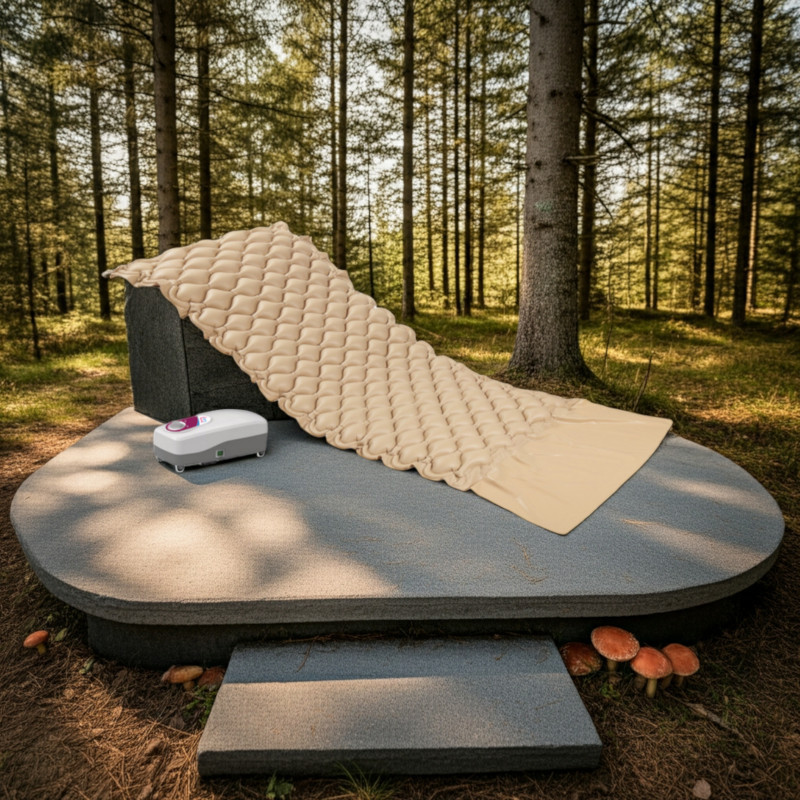 A légmatrac egyszerűen telepíthető és a pumpával együtt teljes rendszert alkot. Használata hozzájárulhat a nyomáspontok változtatásához, a bőr levegőzésének elősegítéséhez és a testhelyzethez való alkalmazkodáshoz.