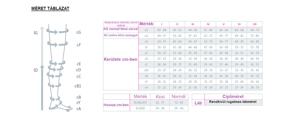 Kerek kötött gyógyászati kompressziós harisnya az alsó végtagok kompressziójára, elsősorban a vénás rendszer rendellenességeinek kezelésére.