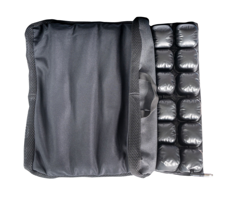 A párna belső szerkezete lehetővé teszi a terhelés elosztását a teljes felületen. Az automatikusan alkalmazkodó légáramlás követi a test mozgását és súlyeloszlását, ami hozzájárul a hosszan tartó ülés során fellépő nyomás mérsékléséhez. A pozicionálás pántokkal állítható, így többféle ülőfelületen is rögzíthető.