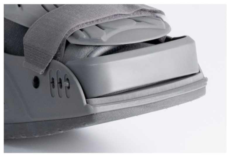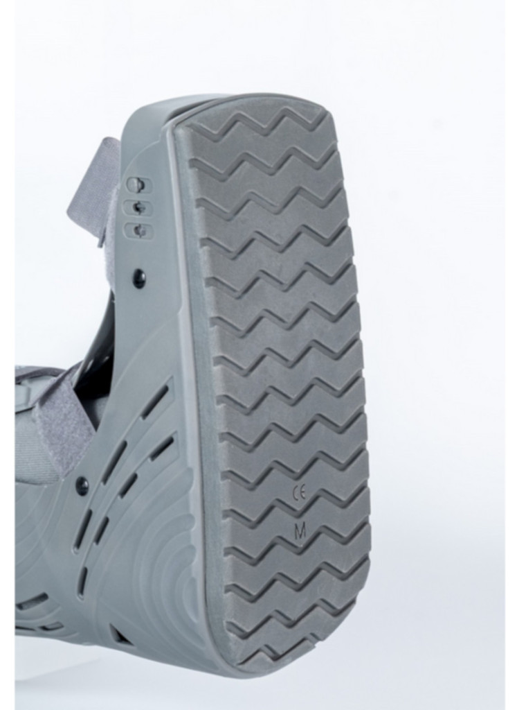 A csúszásgátló, lekerekített talp biztonságos mozgást tesz lehetővé, míg a rögzítő eltávolítható ujjvédővel egészül ki.