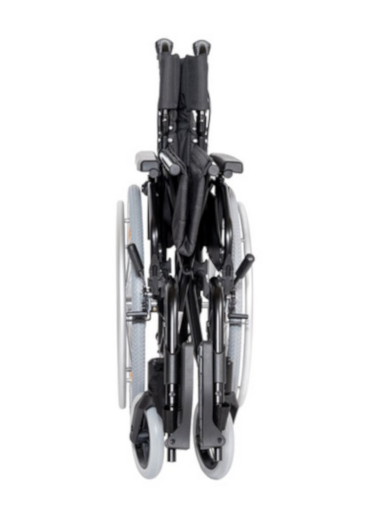 A dönthető és levehető lábtartók magassága állítható, megkönnyítve a be- és kiszállást. A gondozói fékek biztonságos irányítást biztosítanak.