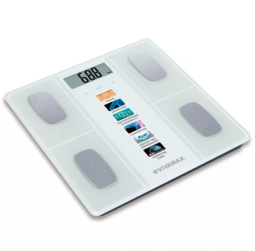 - Multifunkciós készülék: méri a testzsírtartalmat, a víz-, izom- és csonttartalmat, valamint kiszámítja a BMI értéket és az ajánlott napi kalória bevitelt.