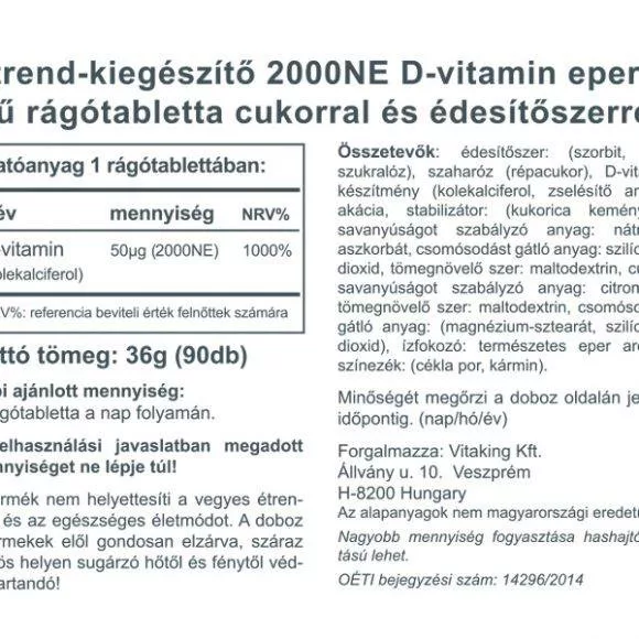 Nem szereti lenyelni a tablettákat, kapszulákat? Akkor ezt az igazán finom epres D3-vitamin rágótablettát Önnek találták ki! Kóstolja meg, és élvezze a finom eper ízt, valamint a D-vitamin előnyös hatásait! Amennyiben nem jut elegendő napfényhez, mindenképp pótolja D-vitamin szükségletét ezzel a remek készítménnyel, mely a felnőttek és gyermekek körében is osztatlan sikert aratott.